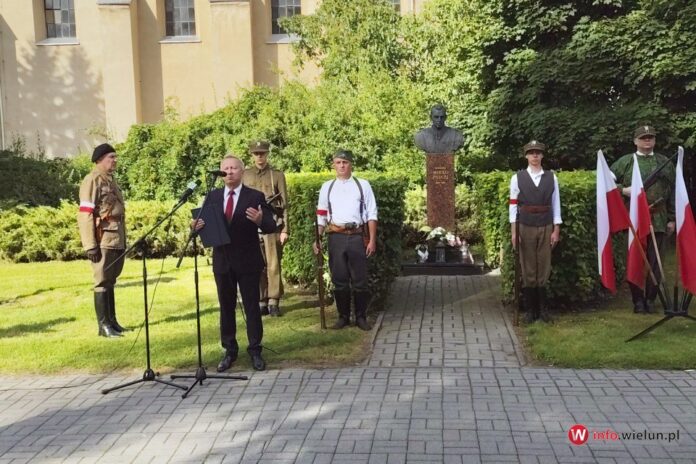 Burmistrz Wielunia Paweł Okrasa w swojej przemowie oddał hołd młodym ludziom, którzy stanęli do nierównej walki z okupantem: