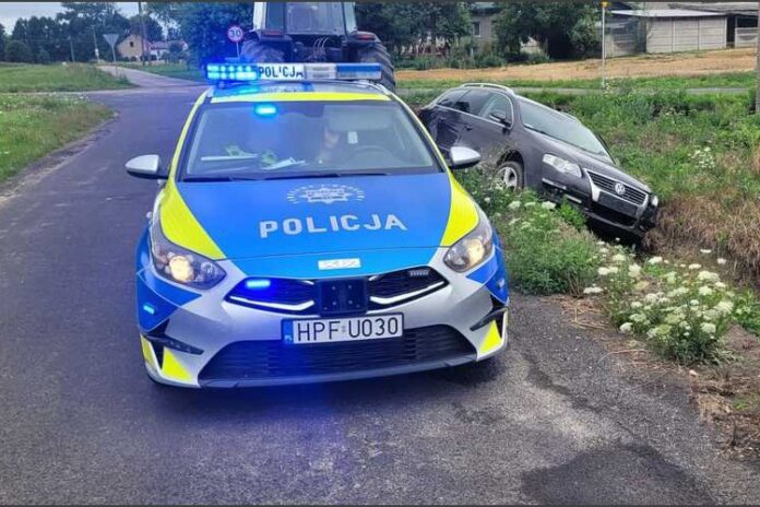 Volkswagen z dużą prędkością przejechał przez kilka ulic, zanim kierowca nie zdołał opanować pojazdu i wypadł z drogi na ul. Zielonej, kończąc rajd w rowie melioracyjnym. Funkcjonariusze zatrzymali mężczyznę, który – jak sam przyznał – uciekał, bo był pijany.