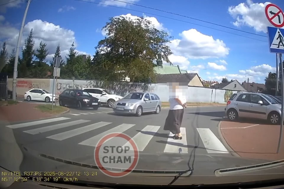 Osoby przechodzące przez przejście dla pieszych mają pierwszeństwo przed jadącymi pojazdami. Do tej zasady nie zastosował się kierowca skody na jednej z ulic Wielunia, a film ze zdarzenia można obejrzeć w serwisie YouTube.
