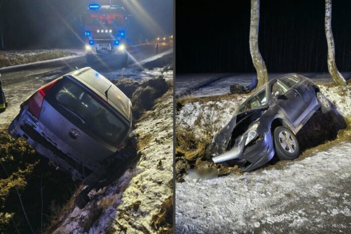 Do groźnego zdarzenia drogowego doszło w piątkowy wieczór, 20 lutego 2026 roku, na trasie Galewice – Ostrówek. W wyniku uderzenia samochodu w przepust drogowy ranna została jedna osoba.